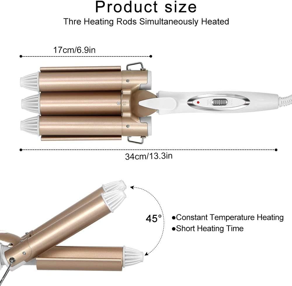 Con el rizador de pelo triple efecto, obtendrás ondas profesionales en minutos sin esfuerzo. Su innovador diseño de 3 tubos y tecnología de calentamiento rápido garantizan un peinado duradero con un acabado brillante y sedoso. Olvídate de los rizos que se deshacen rápido y logra un look perfecto sin necesidad de un salón.